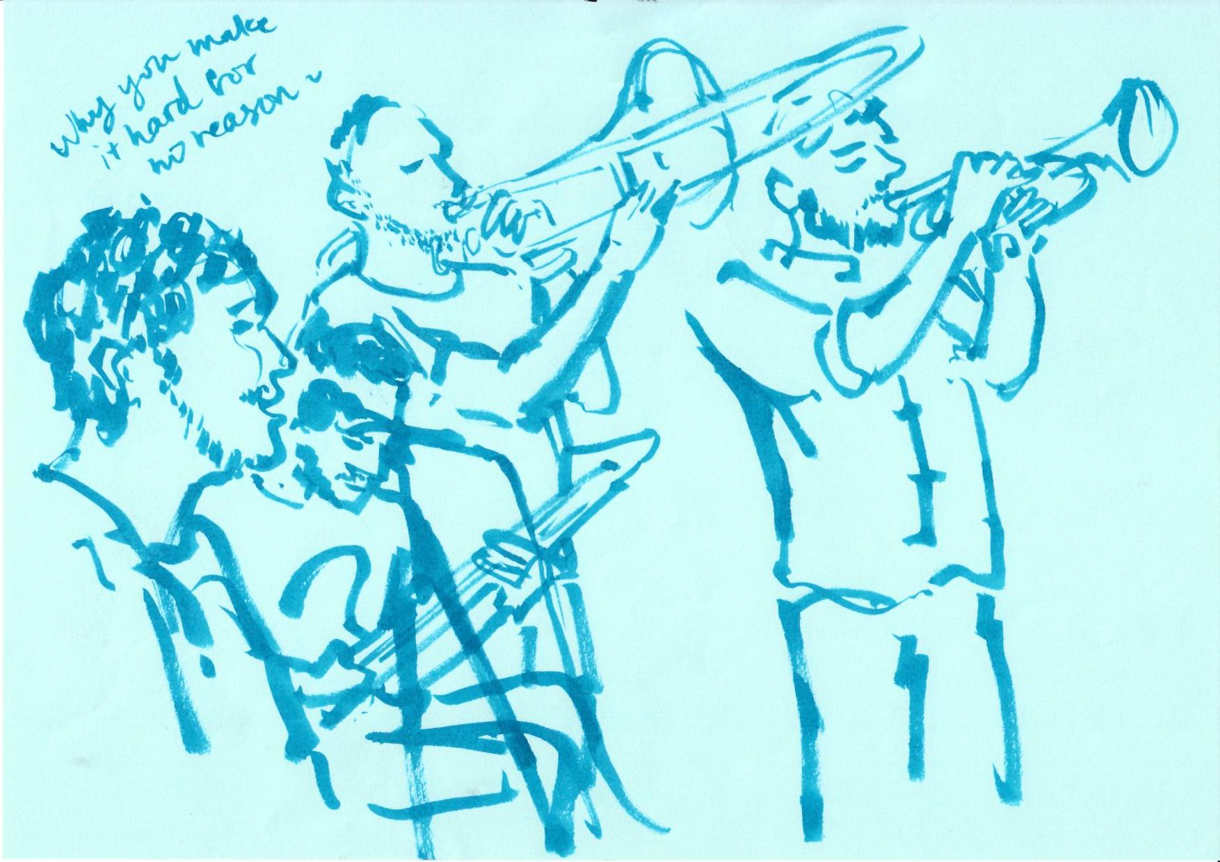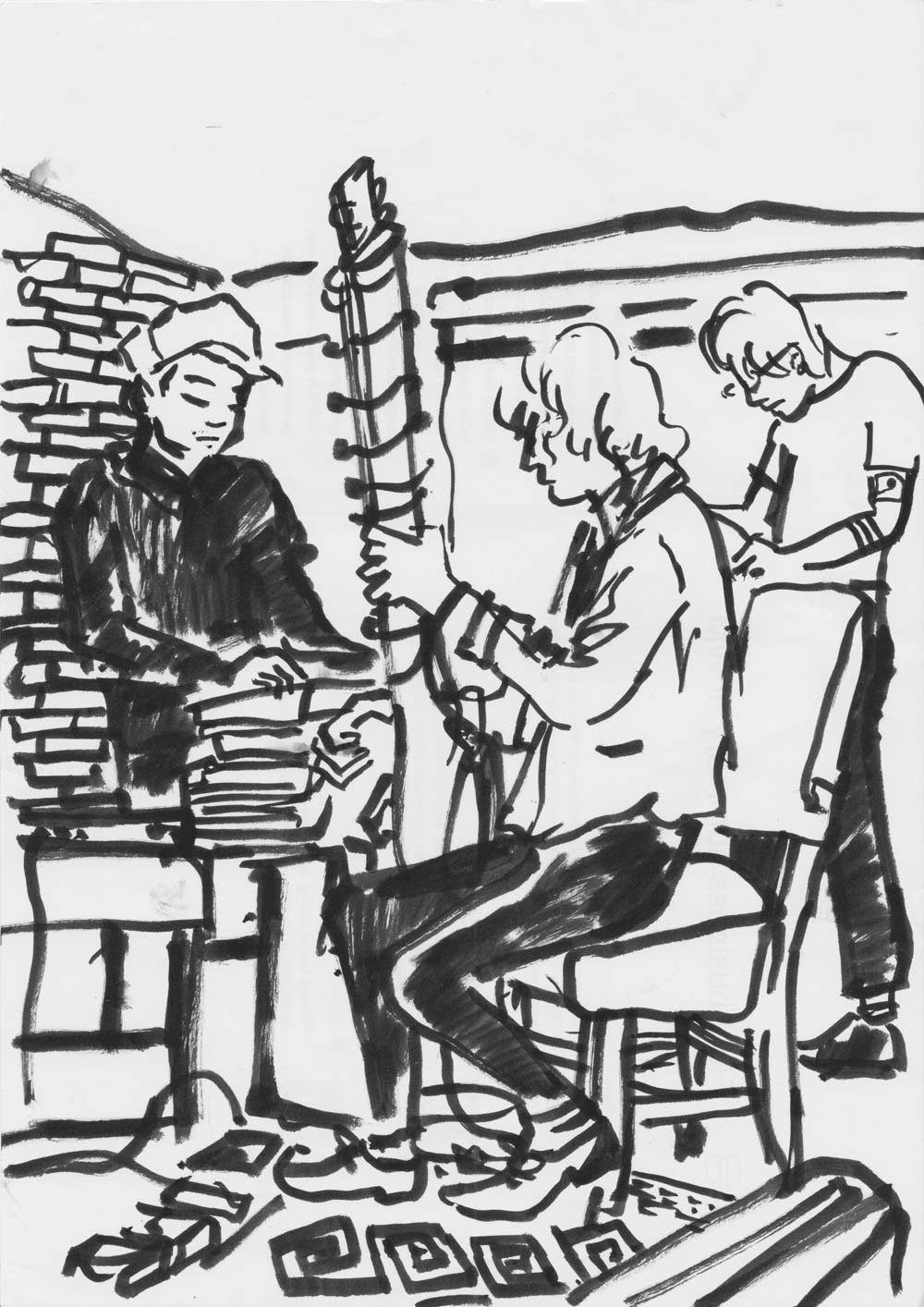 A collection of direct observational drawings of people in various Beijing underground hangouts, such as bars, clubs and live houses.