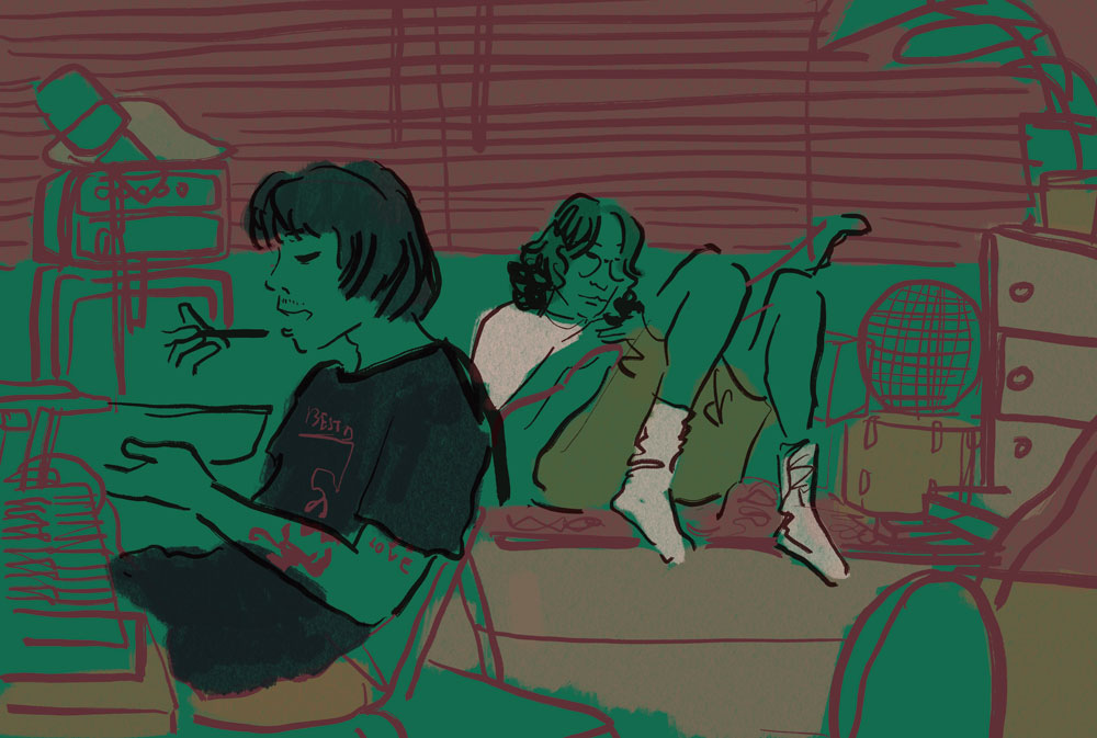 As part of an ongoing pursuit to capture the everyday lives of musicians, artists and the likes in Hong Kong. All illustrations were sketched on site, then scanned, and either coloured digitally or left as is..